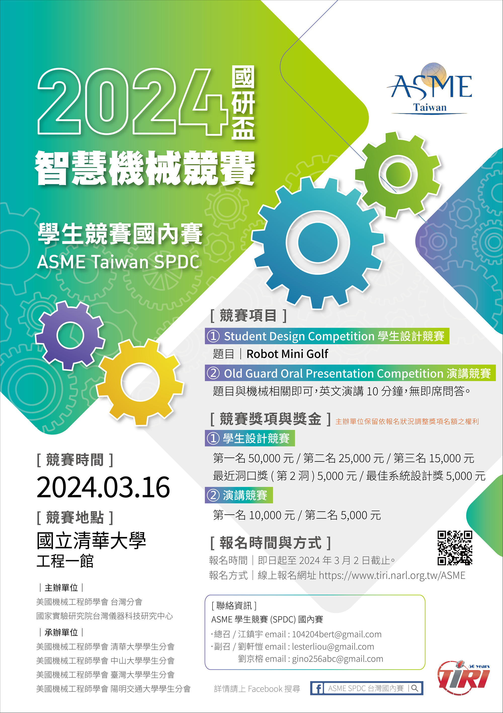 或粉絲專頁訊息:https://www.facebook.com/ASME.SPDC.Taiwan