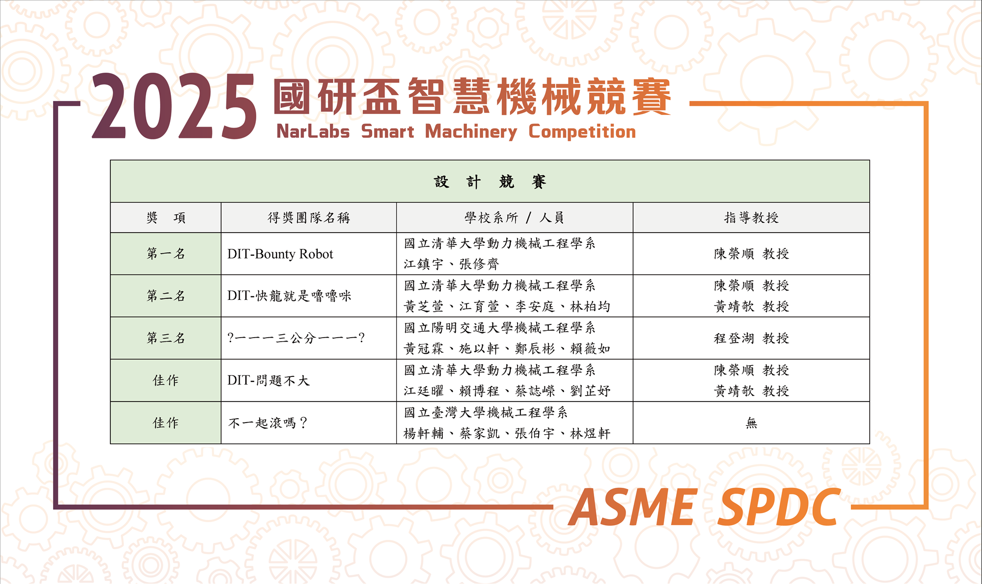 2025 年國研盃智慧機械競賽得獎隊伍名單