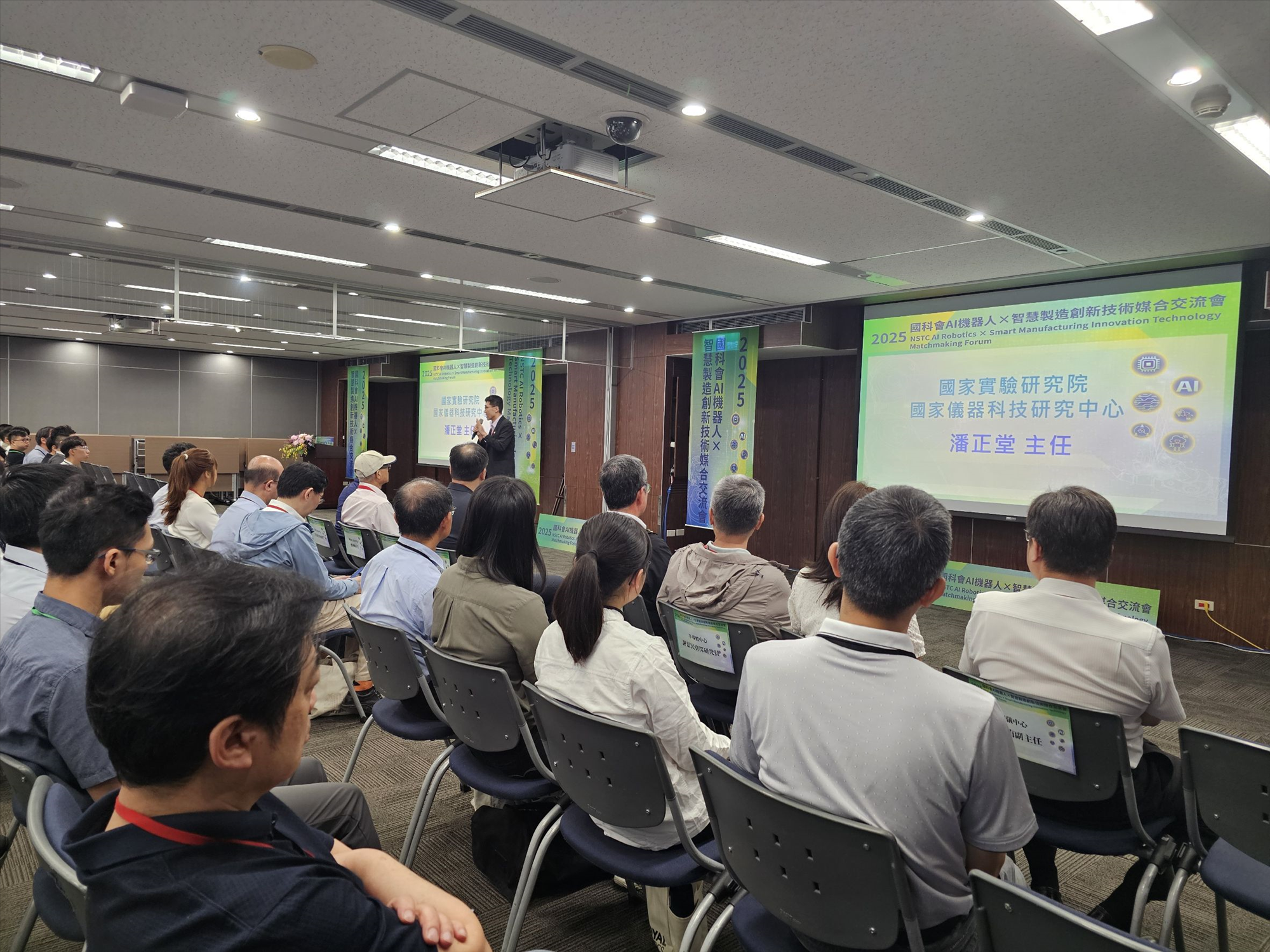 國儀中心-潘正堂主任於「2025 國科會 AI 機器人 × 智慧製造創新技術媒合交流會」中介紹國儀中心的核心技術與貢獻。