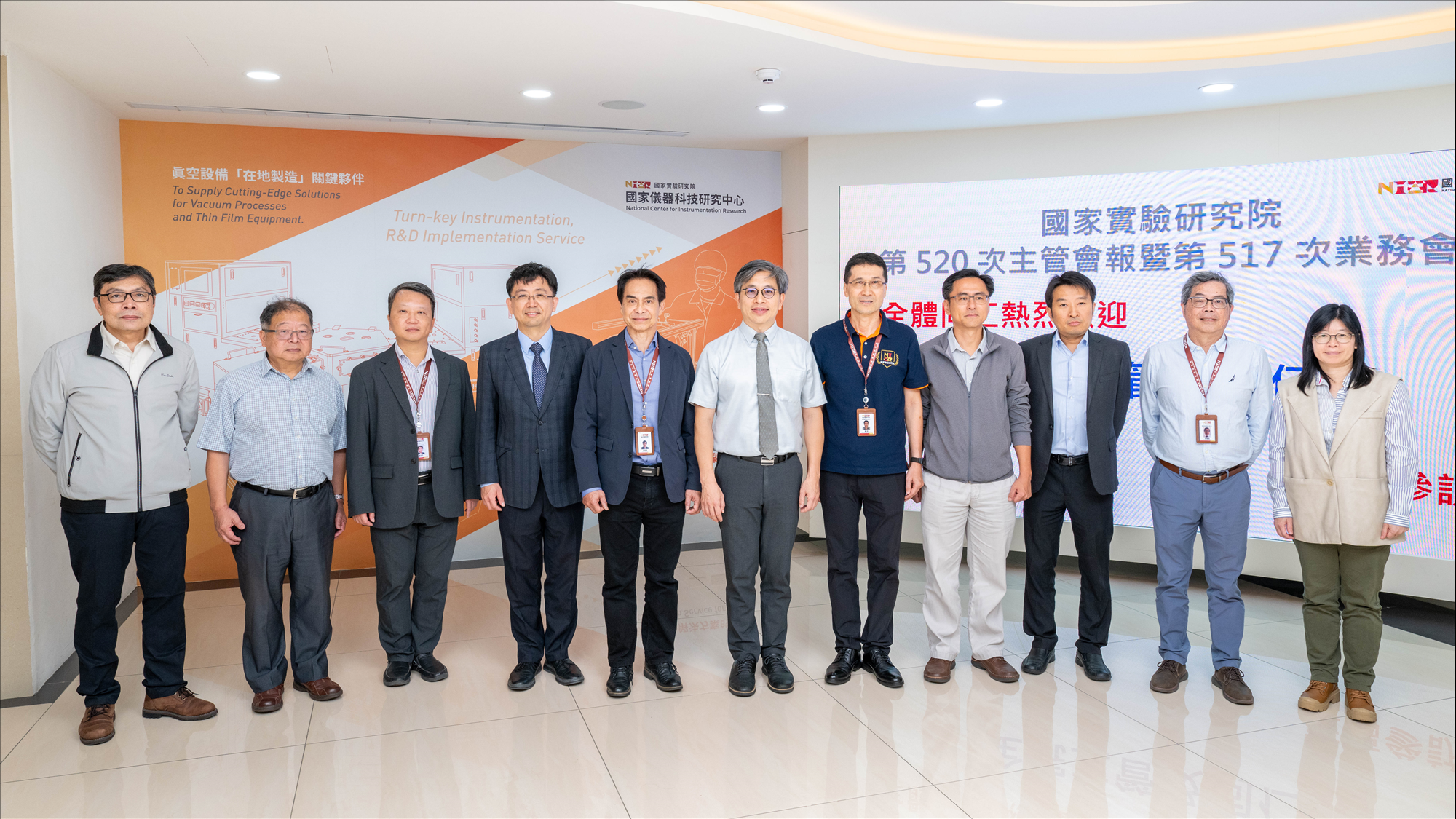 為了解國家實驗研究院 (國研院) 轄下各中心業務以及凝聚全院共識,國研院蔡宏營院長於今日 (11/4) 率領各中心主任及院部主管同仁們蒞臨國儀中心辦理【主管會報暨業務會報】並進行參訪與指導。此次行程由國儀中心潘正堂主任陪同下安排導覽實驗室及新落成的研發大樓。參訪過程中,主管們聽取研究團隊解說,了解國儀中心目前的主要研究方向、技術應用與核心設施的配置,同時實地視察各實驗區域的運作情況。