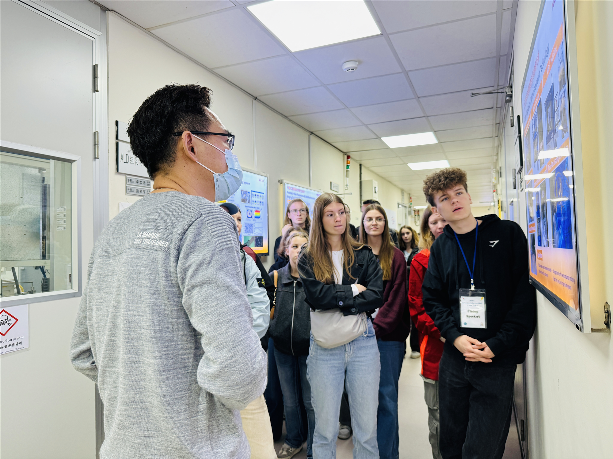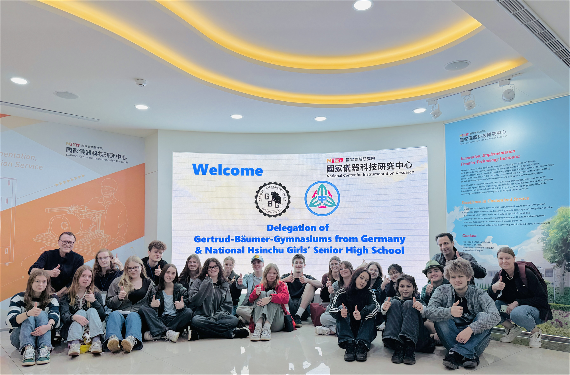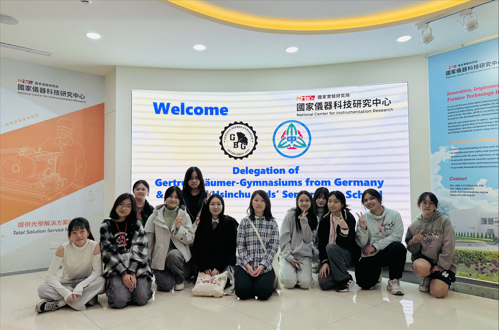 國立新竹女子高級中學及其夥伴學校「德國 Gertrud-Bäumer-Gymnasiums 中學」的師生團隊於 12 月 3 日連袂至國儀中心參訪,瞭解我國國家級研發機構之真空與光學等核心技術於半導體科技即各項跨領域的發展及成果。德國 Ralf Stephan Doering 校長及竹女康雅蘭校長秘書十分開心學生們能有機會參訪國家級實驗研究機構,期待此行能開拓學生們的嶄新視野,對於未來在求學及職涯規劃上有所助益。