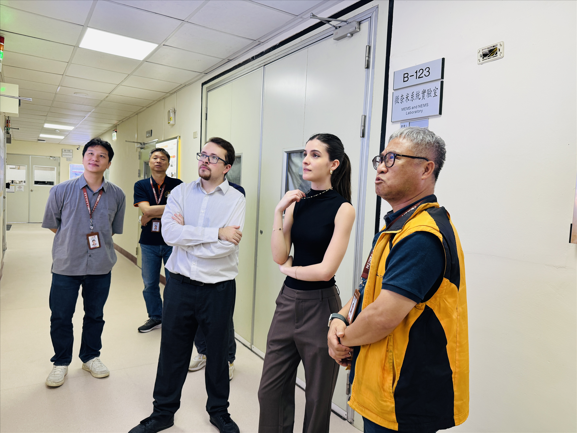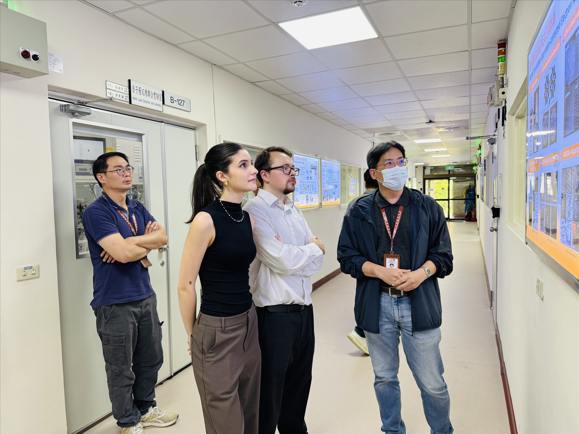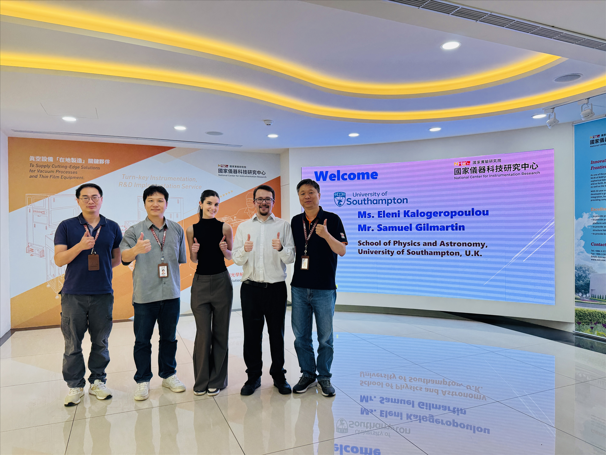 Eleni Kalogeropoulou 小姐與 Samuel Gilmartin 先生就讀於英國南安普敦大學物理與天文學院 (School of Physics and Astronomy, University of Southampton),目前正在歐俊裕教授 (Dr. Bruce (Jun-Yu) Ou) 的 Nano-optomechanics & Nanophotonics Research Team 實驗室攻讀碩士學位。兩位訪賓於 4 月 9 日至國儀中心參訪,瞭解中心在半導體製程設備及精密光學領域的核心技術與服務能量。兩位青年研究人員把握難得來臺機會,積極與研究人員交流,拓展國際視野。