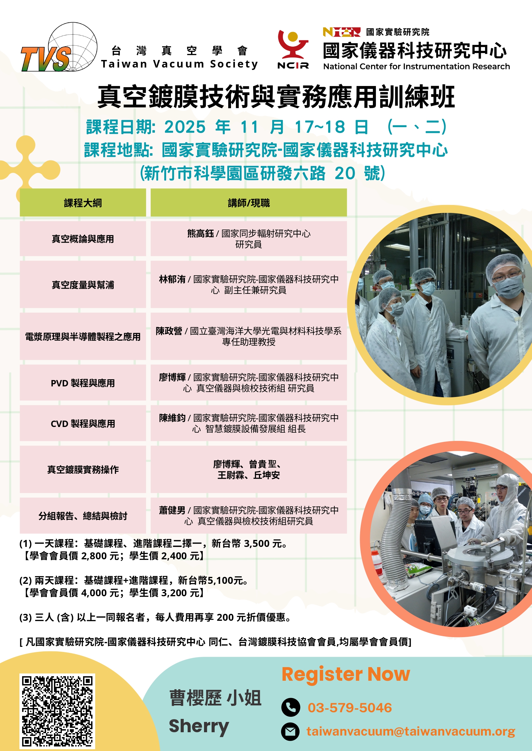 ◎ 聯絡資訊:台灣真空學會秘書 曹櫻歷 小姐 (03) 5795046,email: taiwanvacuum@taiwanvacuum.org