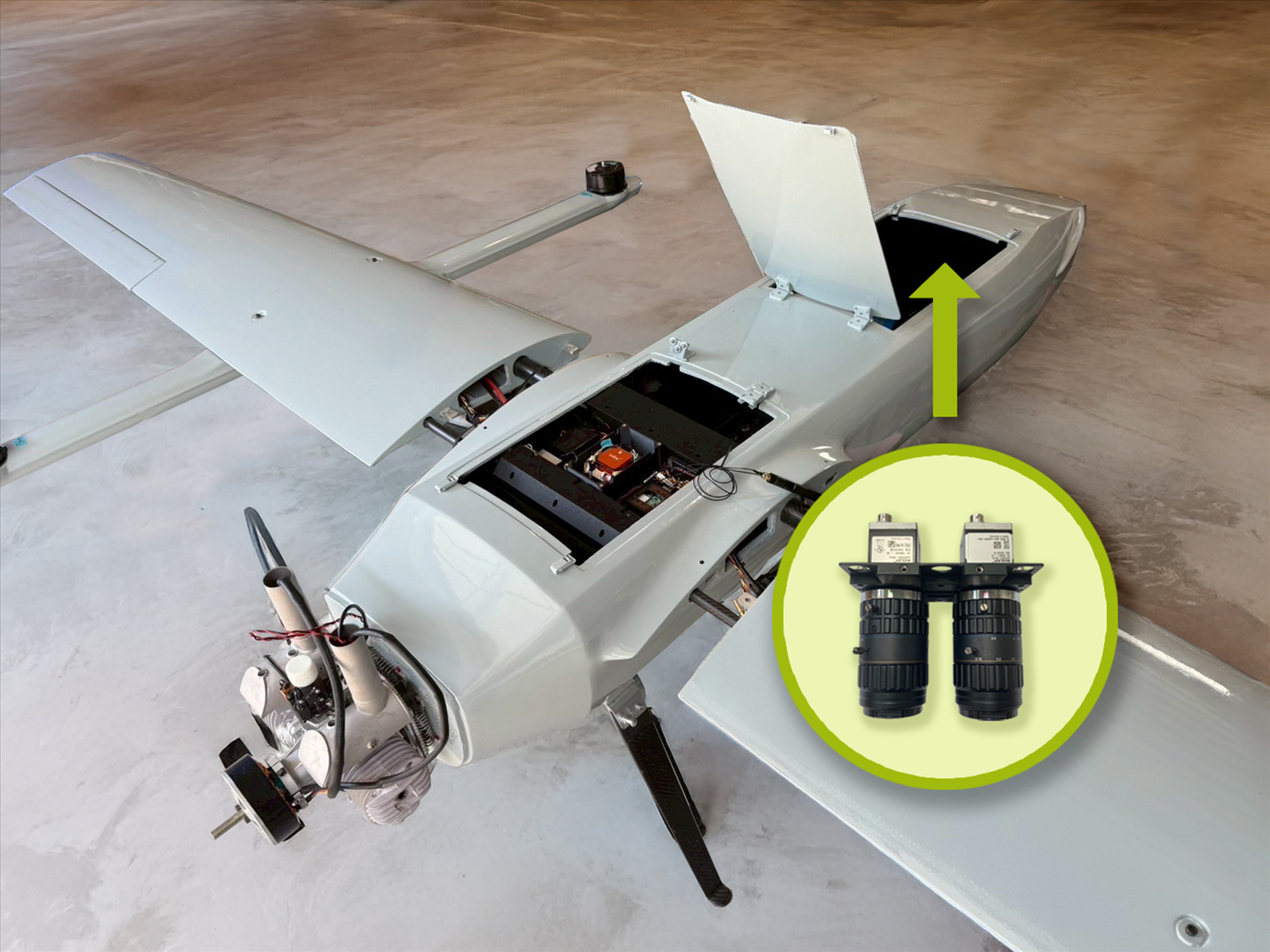 「高空無人機之多光譜遙測系統」克服了高耐振、小型化及飛航電控等挑戰,並具備可見光與近紅外光四個波段光譜資訊,可提供高解析度的光譜影像數據,實現輕量化、低功耗且高穩定性的設計。搭載於複合動力 VTOL 無人機,適合執行長航時及高滯空任務,能有效應用於環境監測、災害評估、國土管理及精緻農業等多元場域。且該款多光譜遙測系統為國內自行設計開發,可依照不同飛航任務需求,彈性調整系統規格與系統研製,達到技術自主目標,大幅降低對國外昂貴光學酬載的依賴。