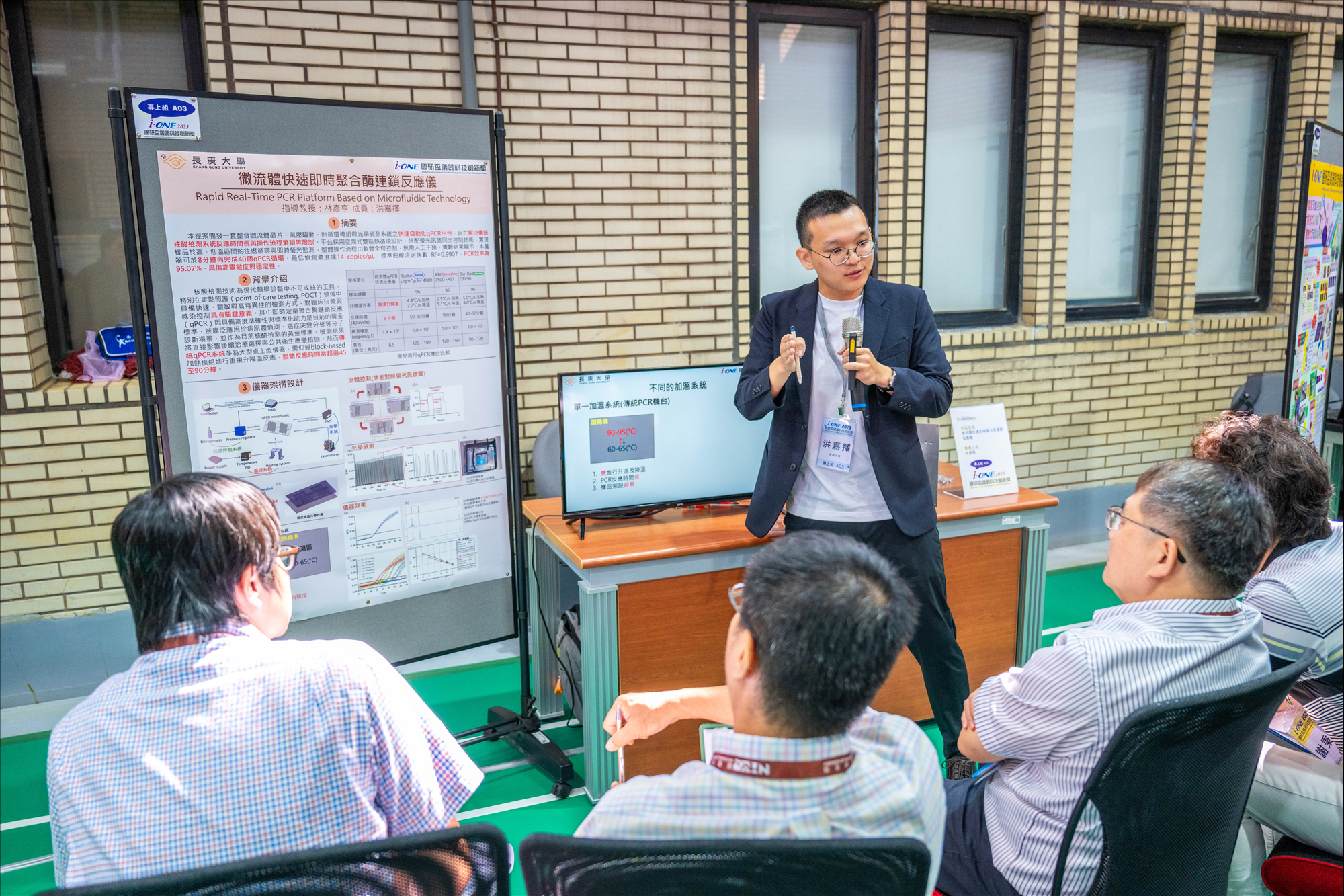 專上組長庚大學團隊的作品「微流體快速即時聚合酶連鎖反應儀」,整合微流體晶片、雙區溫控模組、流體驅動模組、光學偵測單元與控制介面,打造出一套自動化 qPCR 平台,並以標準基因序列模板進行實驗驗證,具備高靈敏度與穩定性,展現在生醫檢測應用上的潛力。