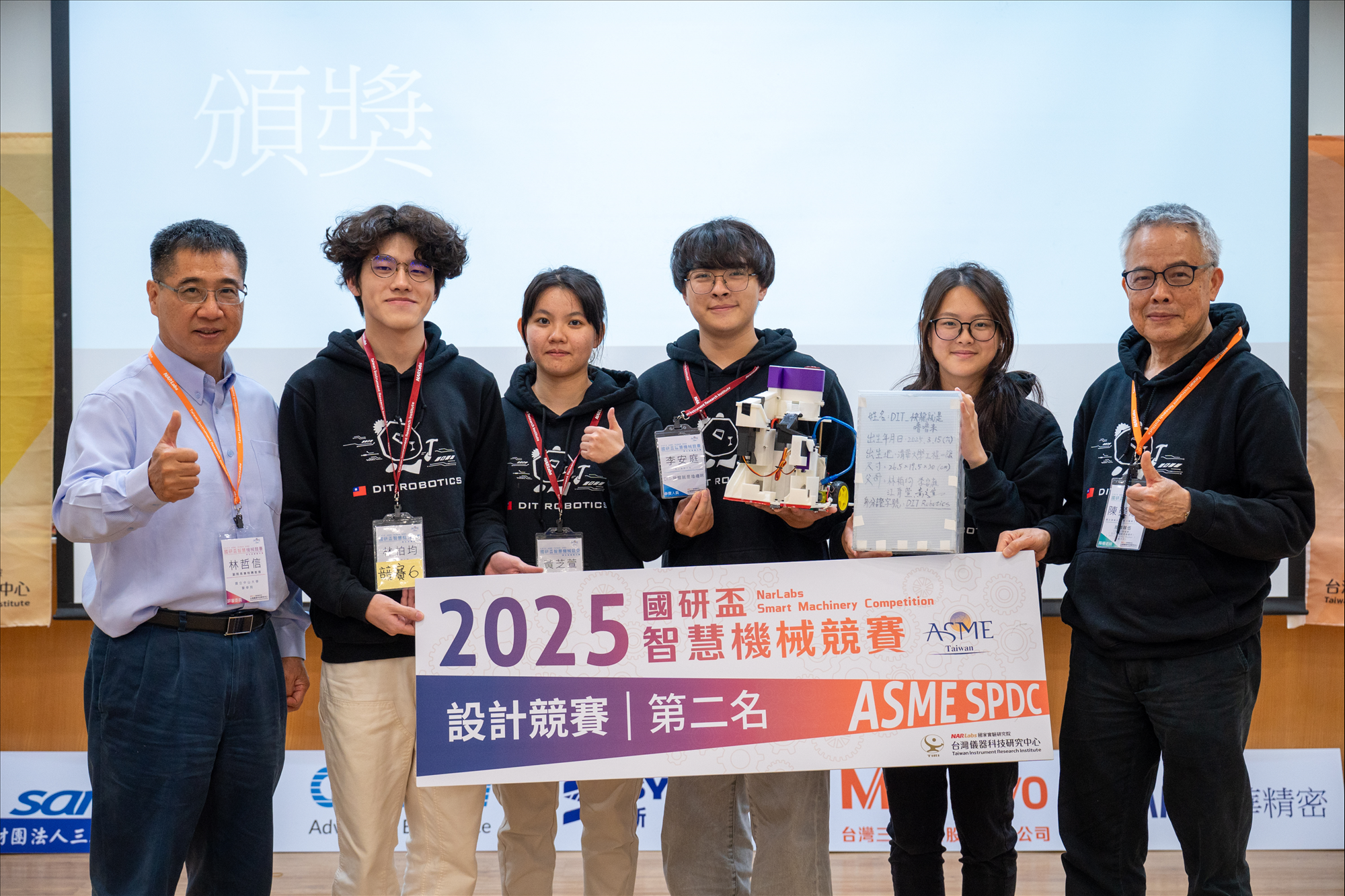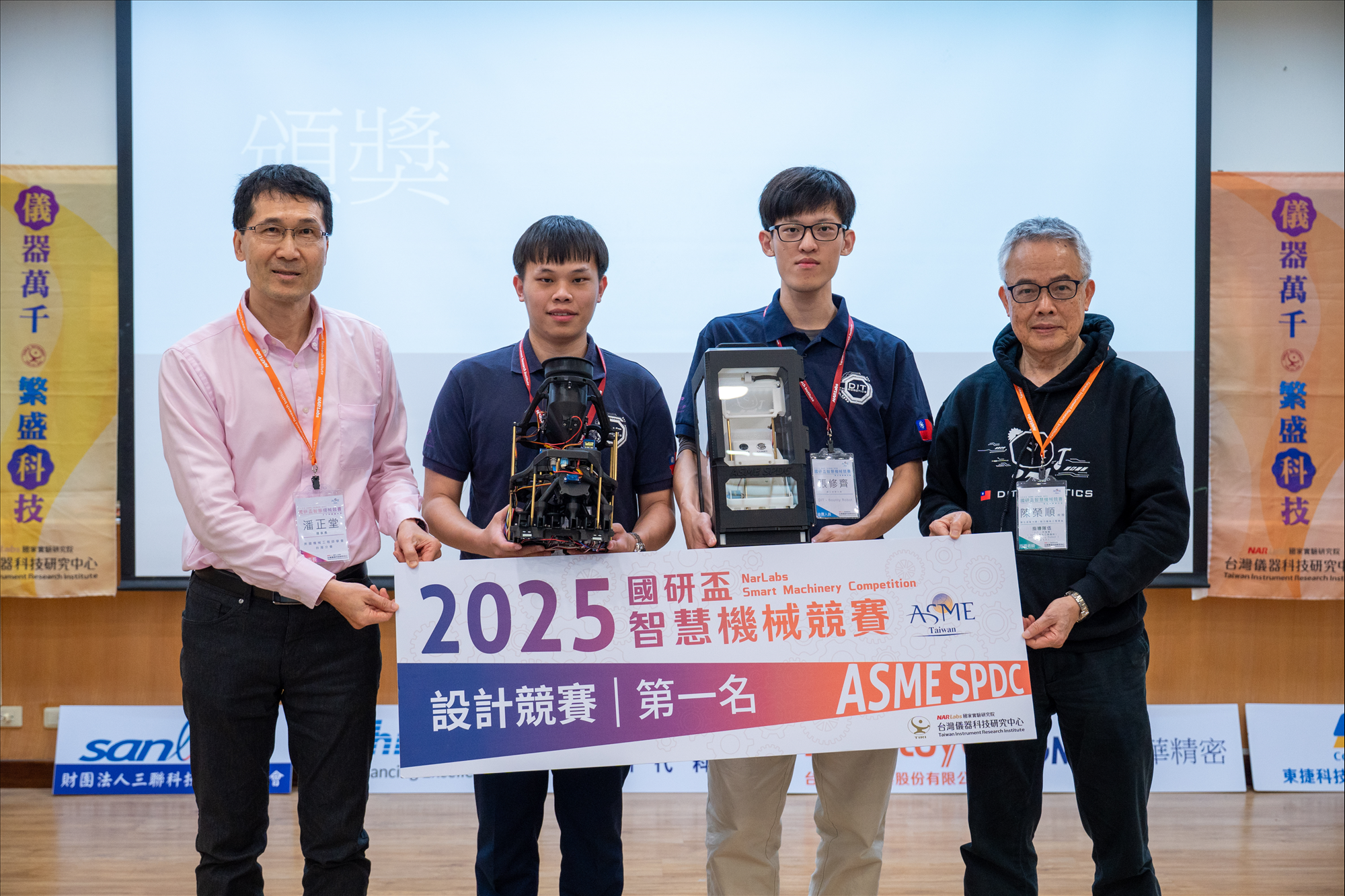 國研院儀科中心主任潘正堂 (左一) 頒發設計競賽第一名給清華大學「DIT - Bounty Robot」團隊
