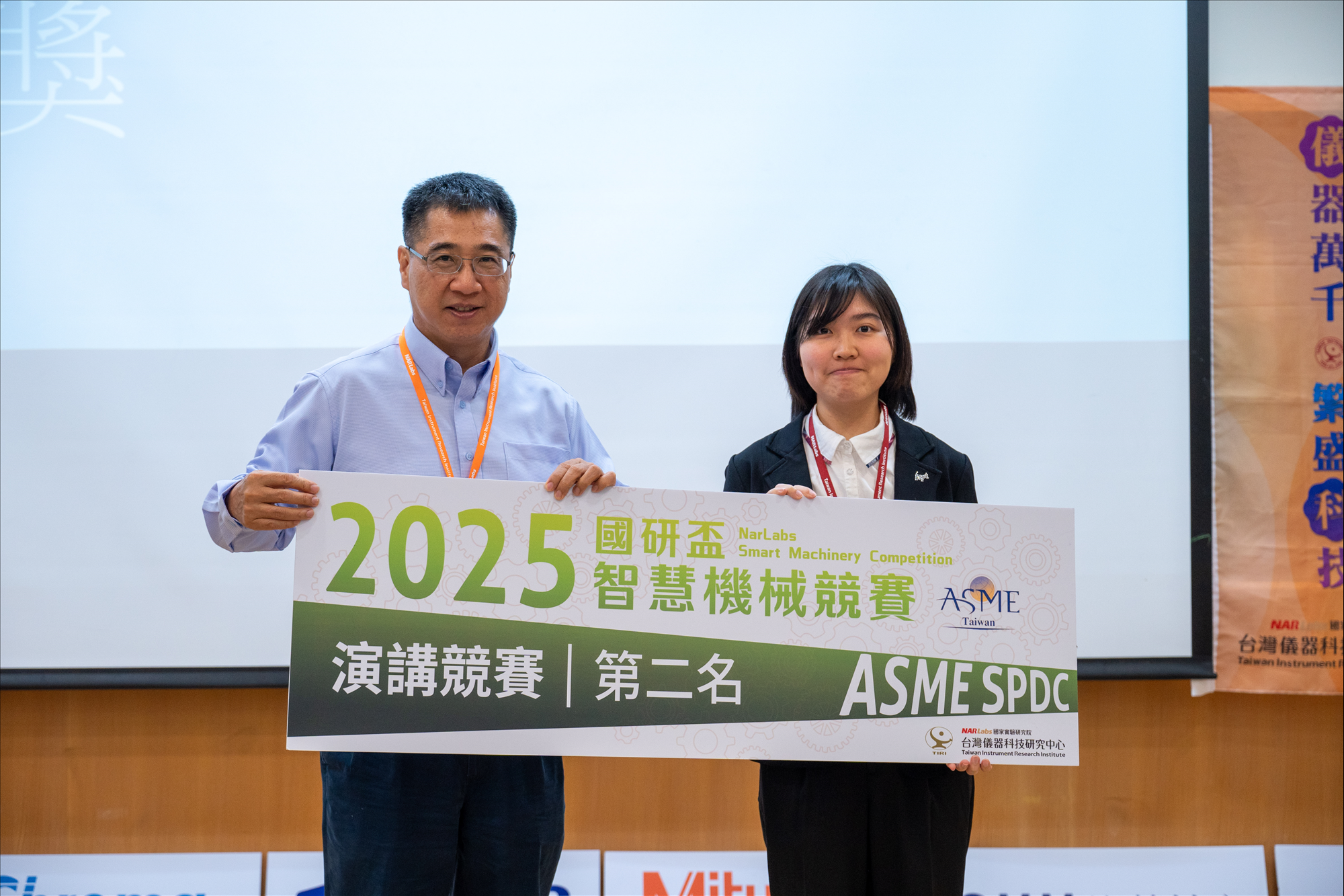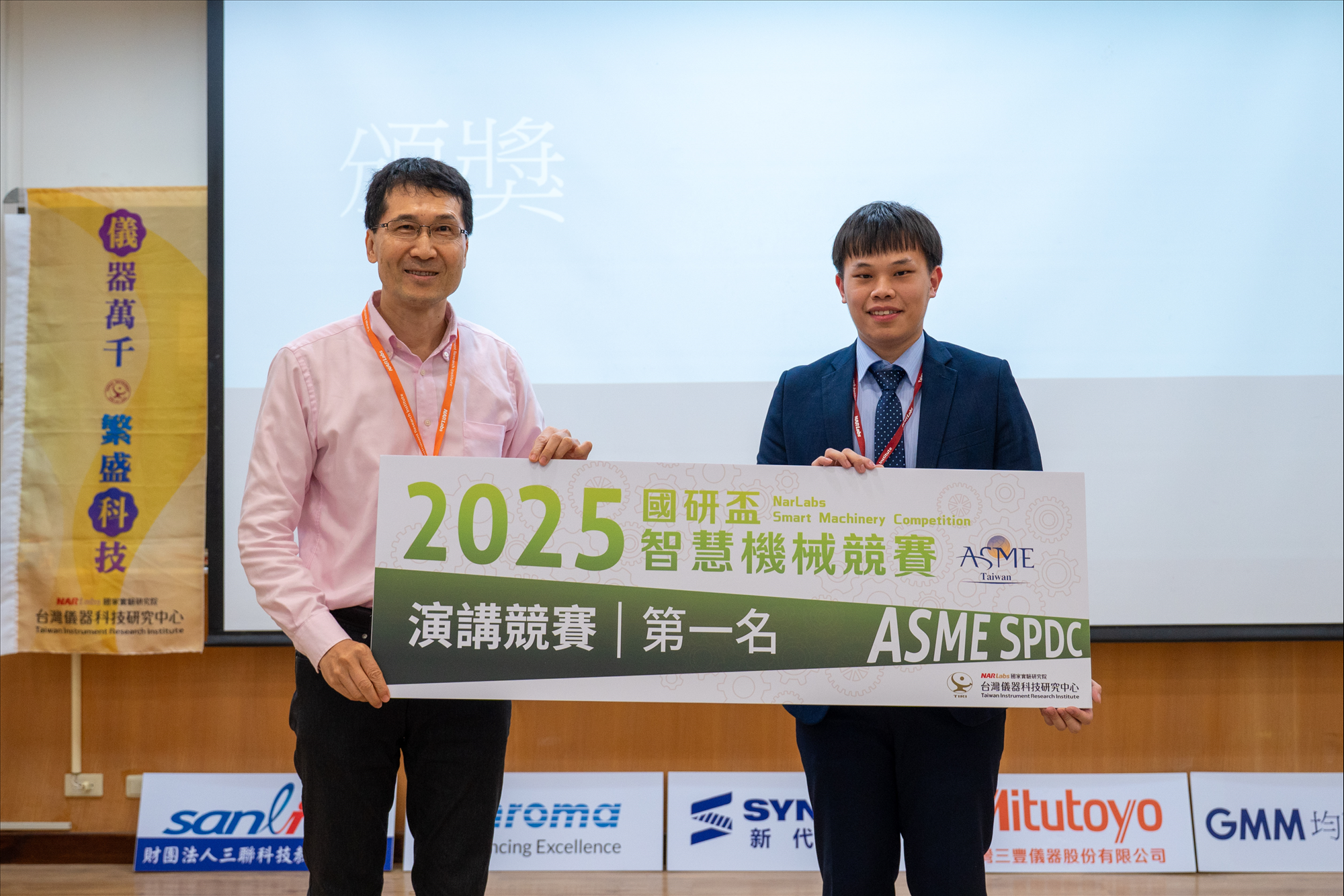 另一項為英文演講競賽,評審重點在於學生個人對機械相關議題的分析與分享能力,本競賽則由清華大學江鎮宇奪冠,其台風穩健、條理分明,對演講議題有深刻的見解,贏得評審一致贊同;臺灣大學游允約鋪陳觀點的邏輯清晰,獲得評審高度評價列為第二名。