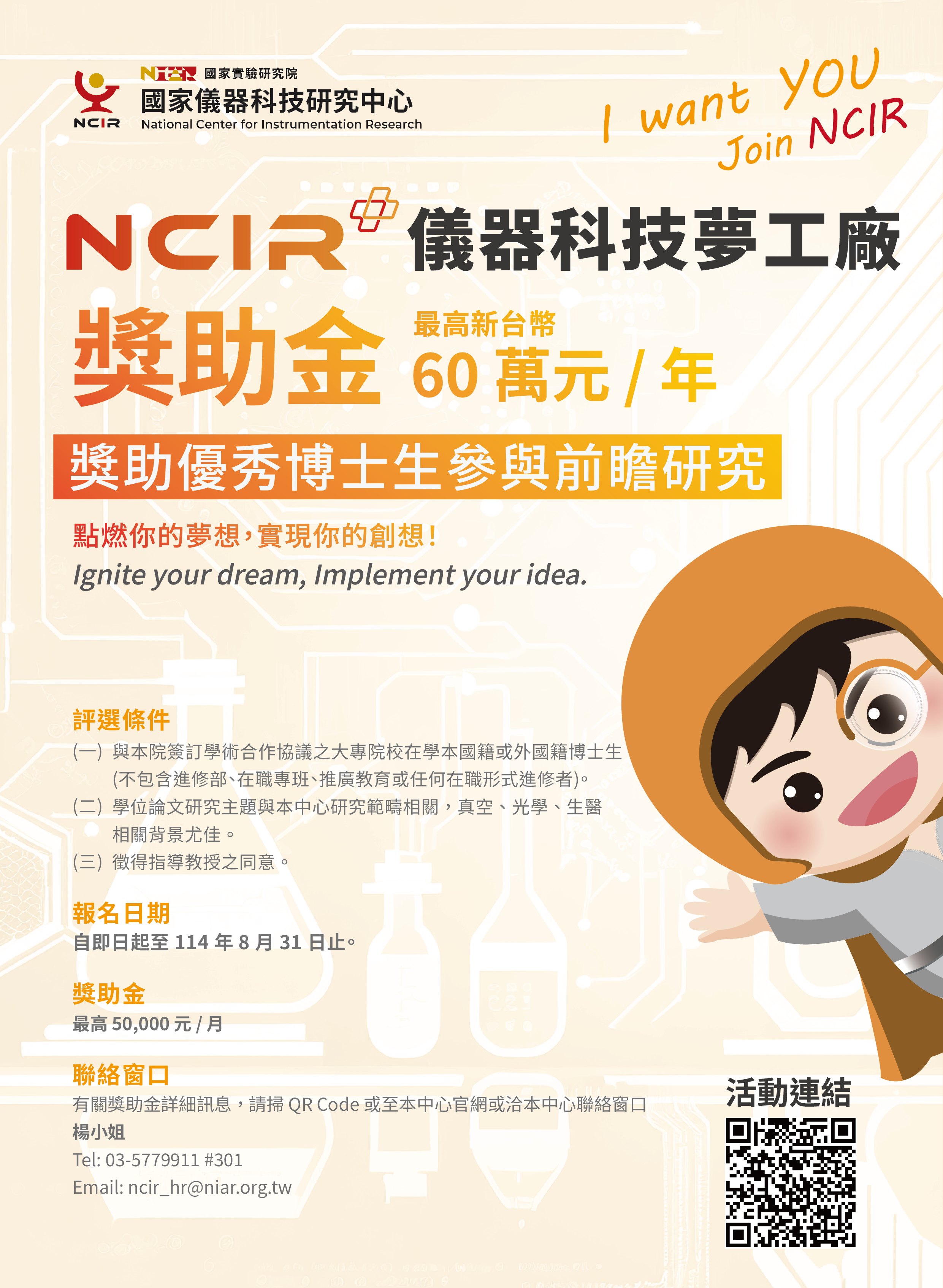 聯繫窗口:人事楊小姐 Tel: 03-5779911#301 Email: ncir_hr@niar.org.tw